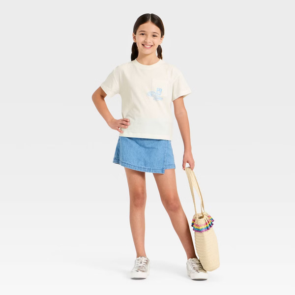 Cat & Jack Girls' Short Sleeve 'Stamps' Graphic T-Shirt, XS - Cream