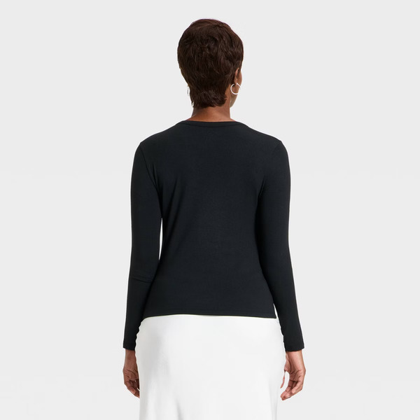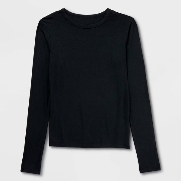 A New Day Women's Long Sleeve Fitted Jersey T-Shirt, XS - Black