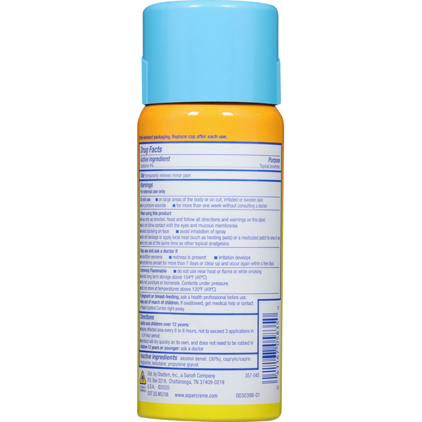 Front of Muscles, Joints & Pain Relief Aspercreme Pain Relief Spray, with 4% Lidocaine, Max Strength, Dry Spray