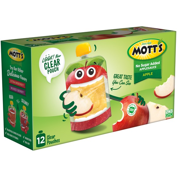 Front of Canned Fruit & Applesauce Mott's Unsweetened Applesauce Pouches, Apple