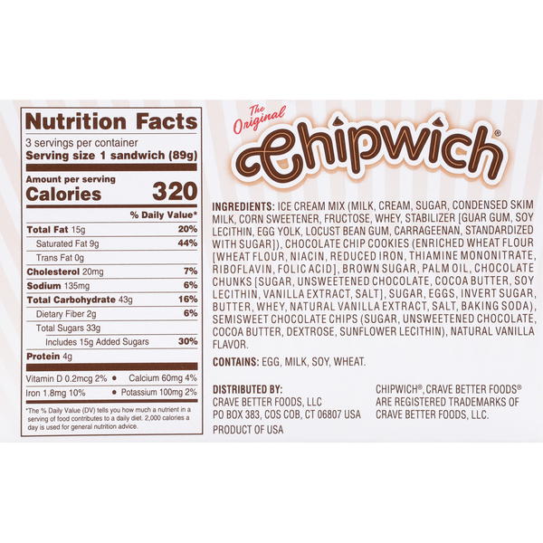 Chipwich Ice Cream Sandwich, Vanilla Chocolate Chip