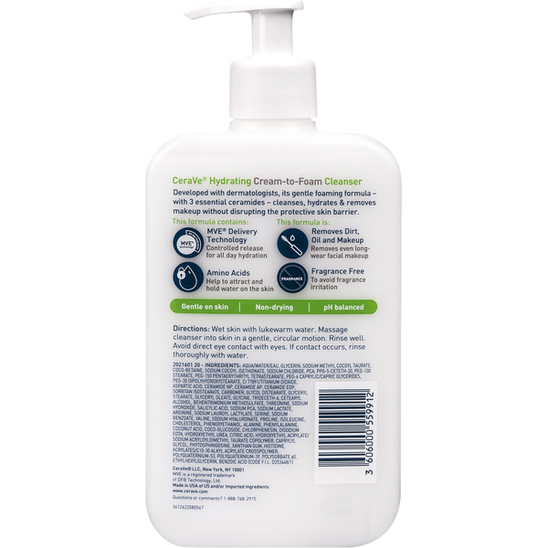 CeraVe Cleanser, Hydrating, Cream-To-Foam