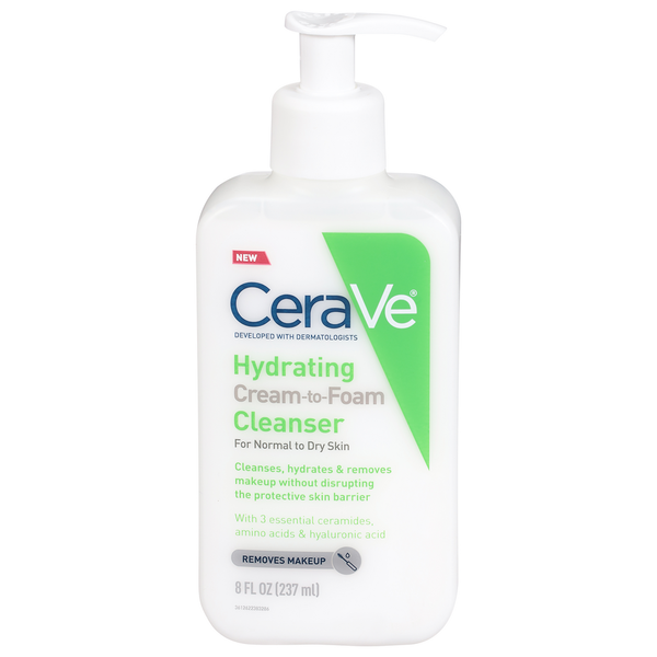 CeraVe Cleanser, Hydrating, Cream-to-Foam, Removes Makeup