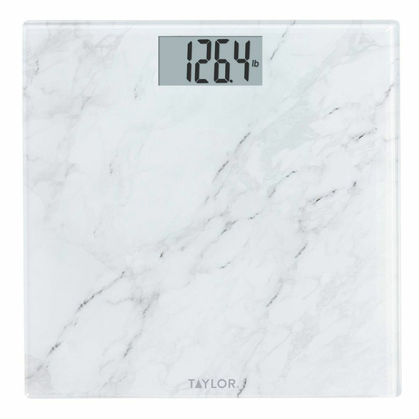 Front of Bathroom Scales Taylor White Glass Digital Scale with Marble Design