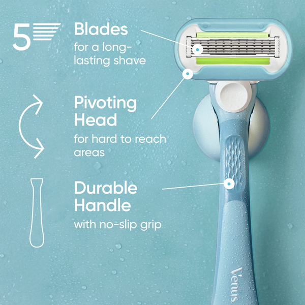 Front of Venus Extra Smooth Women's Razor, 4 Blade Refills + Shower Holder