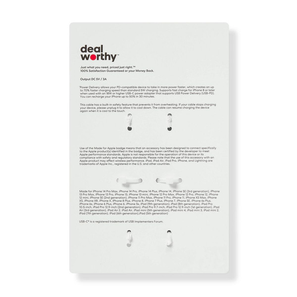 Front of More Household Dealworthy Lightning To USB-C Charging Cables - White