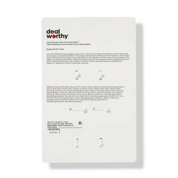 Front of More Household Dealworthy Lightning to USB-A Charging Cable - White