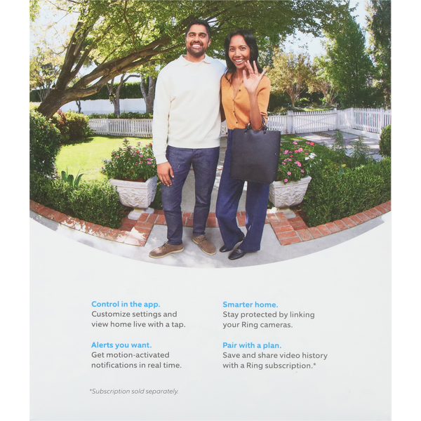 Front of Ring Satin Nickel/White Battery Doorbell and Indoor Cam