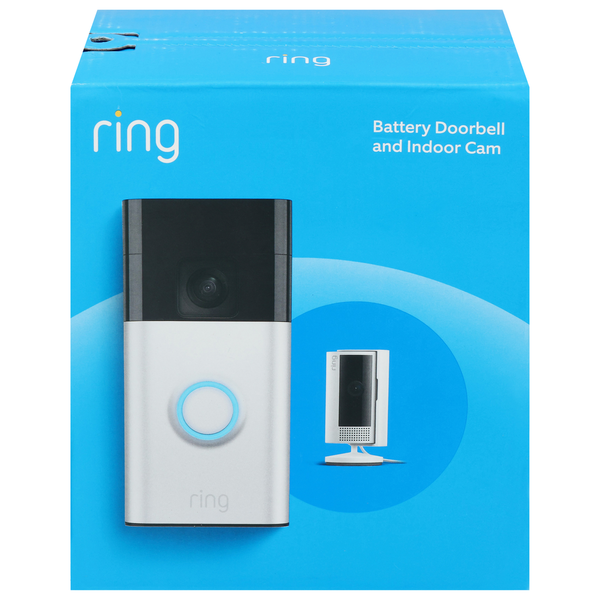 Ring Satin Nickel/White Battery Doorbell and Indoor Cam