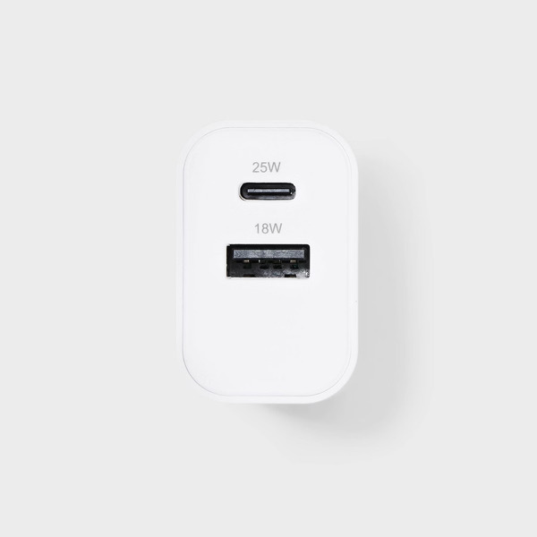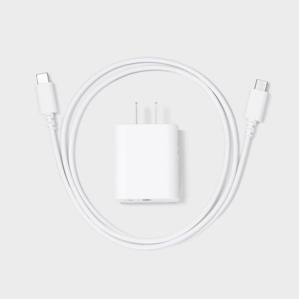 Front of More Household Dealworthy 2-Port 25Watt Wall Charger With USB-C to USB-C Cable - White