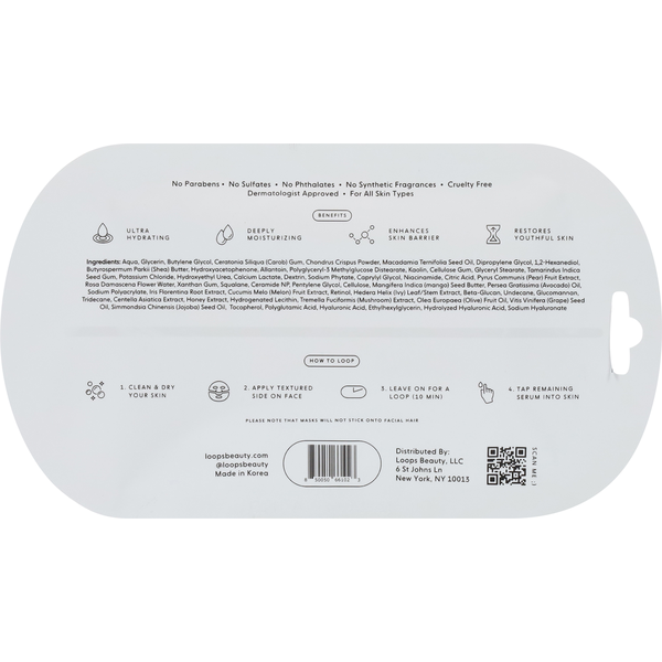 LOOPS Face Mask, Ultra Hydration, Dew Cloud