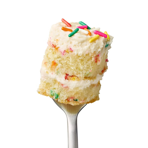 Front of Favorite Day Birthday Cake Vanilla-flavored Cake With Rainbow Sprinkles And Vanilla-flavored Cream Cheese Frosting Layered Dessert