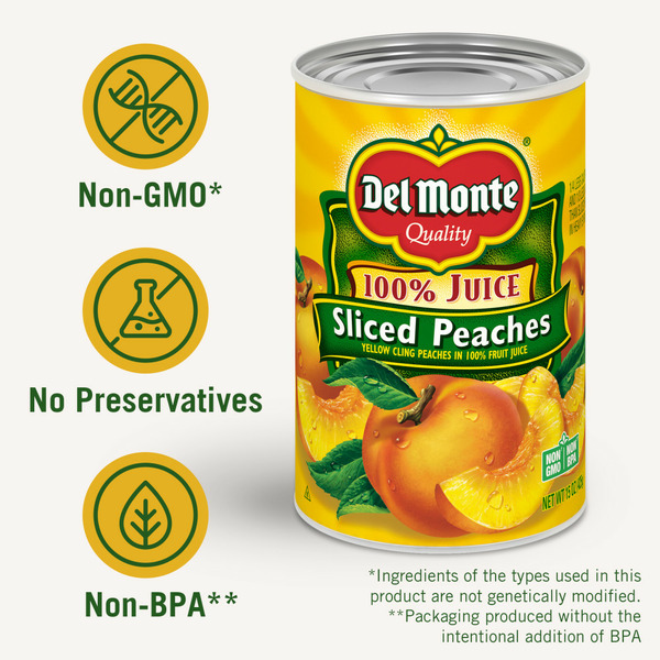 Del Monte Yellow Cling Sliced Peaches in 100% Juice, Canned Fruit