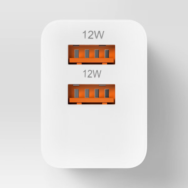 Front of More Household Dealworthy Dual Port USB-A Home Chargers - White