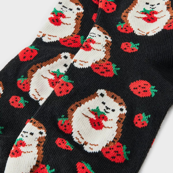 Women's Strawberry Patch Hedgehog Ankle Socks, Size 4-10 - Black