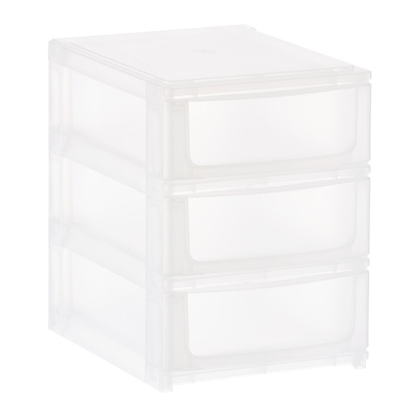 Front of Craft & Hobby Storage The Container Store 3-Drawer Shimo Small Stacking Organizer - Translucent - 7-5/8" x 10-3/8" x 10-3/8" h