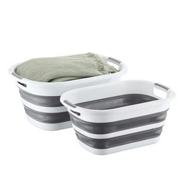 The Container Store Collapsible Laundry Basket, 21 x 15 x 9 in - White & Grey