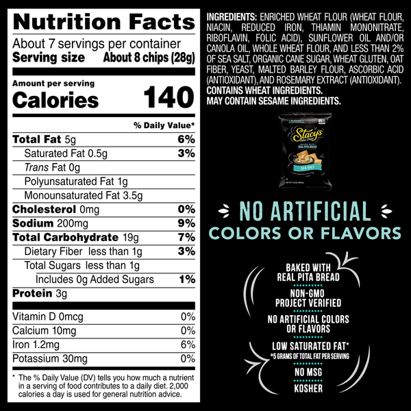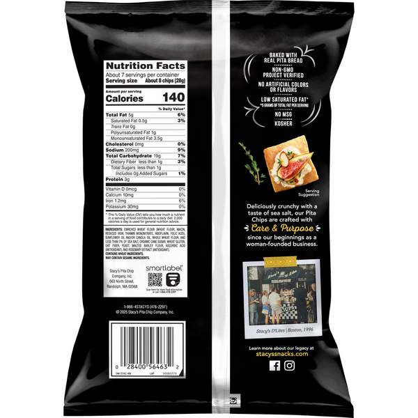 Front of Chips & Pretzels Stacy's Baked Pita Chips  Sea Salt
