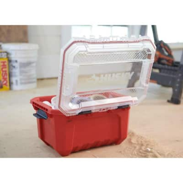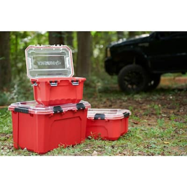 Husky 5-gal. Professional Heavy Duty Waterproof Stackable Plastic Storage Container With Hinged Lid In Red