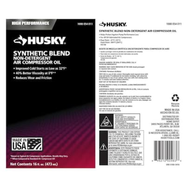 Husky Synthetic Blend Non-detergent Oil Air Compressor