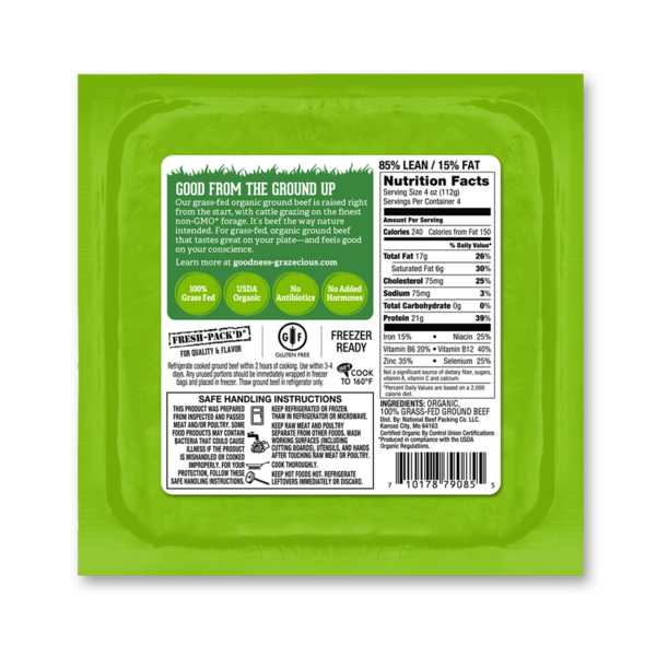 Goodness Grazecious 85% Lean / 15% Fat Grass-Fed Organic Ground Beef