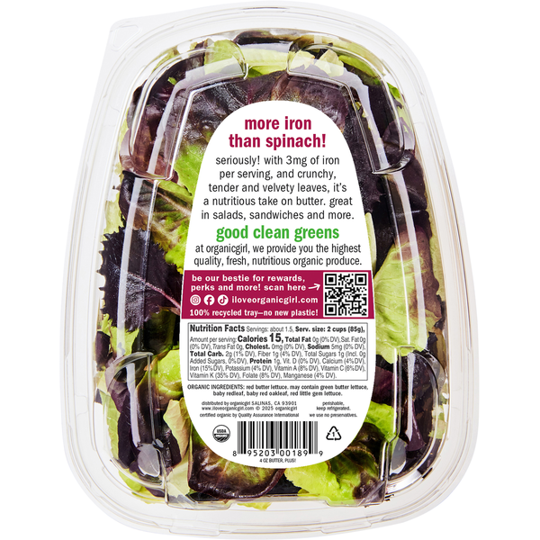Front of Packaged Vegetables & Fruits Organic Girl True Hearts Butter, Plus Salad