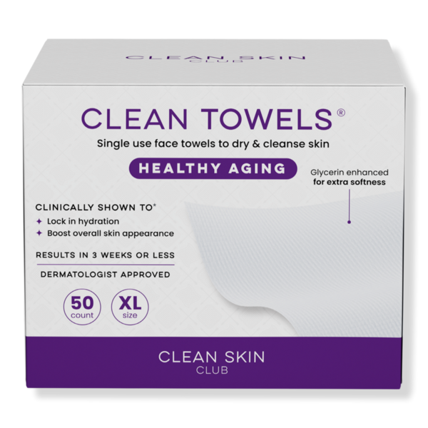 Front of Clean Skin Club Clean Skin Club Clean Towels Healthy Aging Disposable Face Towels - 50 ct